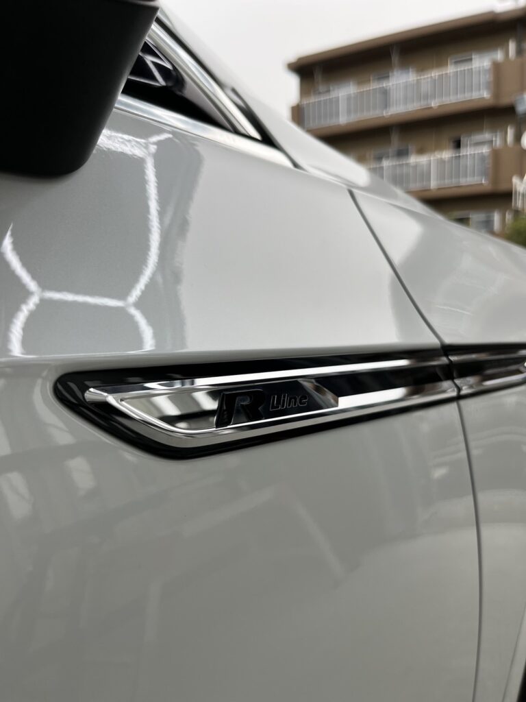 新車で購入から7年間ガソリンスタンドにて手洗い洗車をされてきたとのことでしたが、細部の汚れや全体的に付着した輪ジミ(ミネラルなど)の付着が多くみられ、水弾きも低下しておりましたので徹底洗車にて全て除去させていただきました。