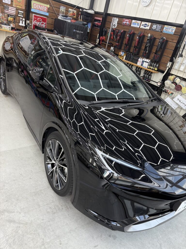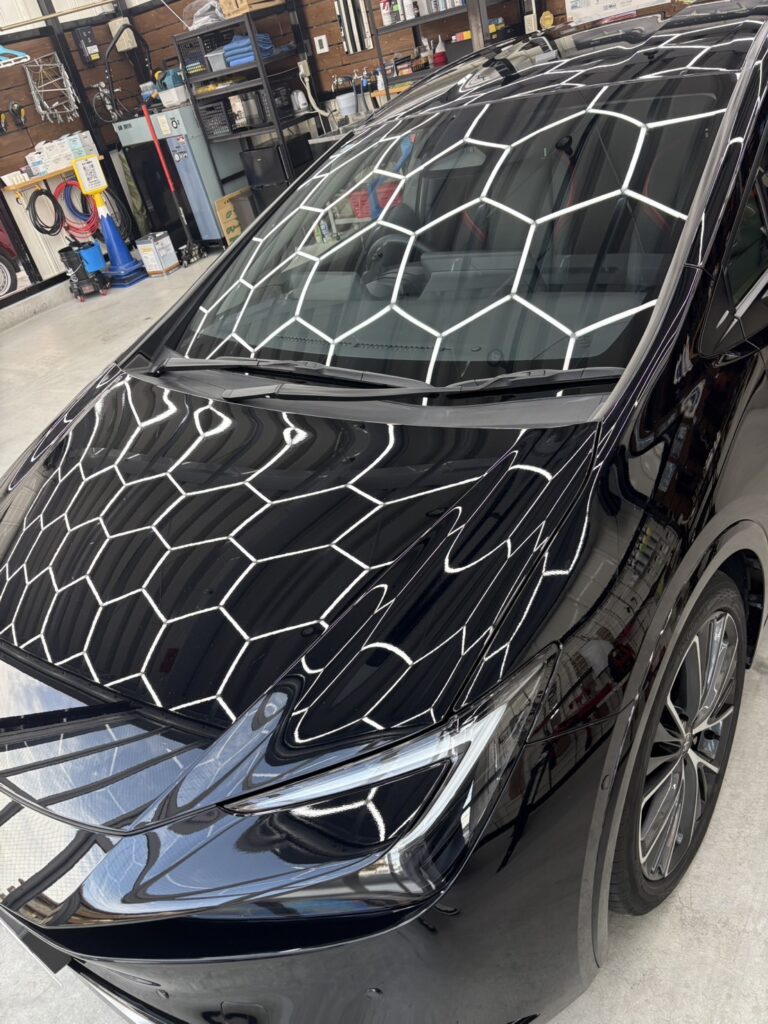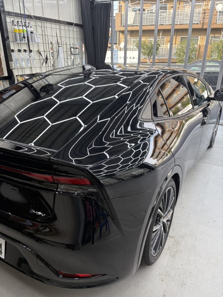 ブラック系のボディカラーは、細かなキズや水ジミが目立ちやすいためコーティングによる保護が重要です。