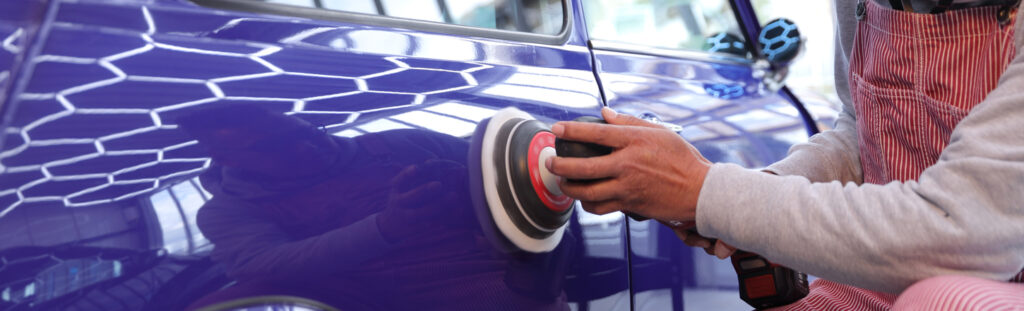 専用照明で塗装を精査し、残った小キズや曇りを丁寧に磨き上げます。スケールを適切に除去した状態で研磨するため、艶の深みや透明感がより一層引き立ちます。車種や塗装の特性に合わせた段階的な研磨で、必要最小限の除去にとどめつつ美しさを追求します。