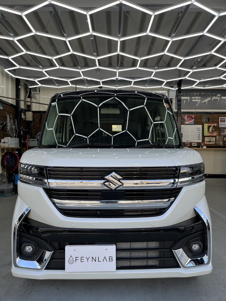 新車のスペーシアカスタムに、FEYNLAB社セラミックウルトラ5年耐久を施工させていただきました。