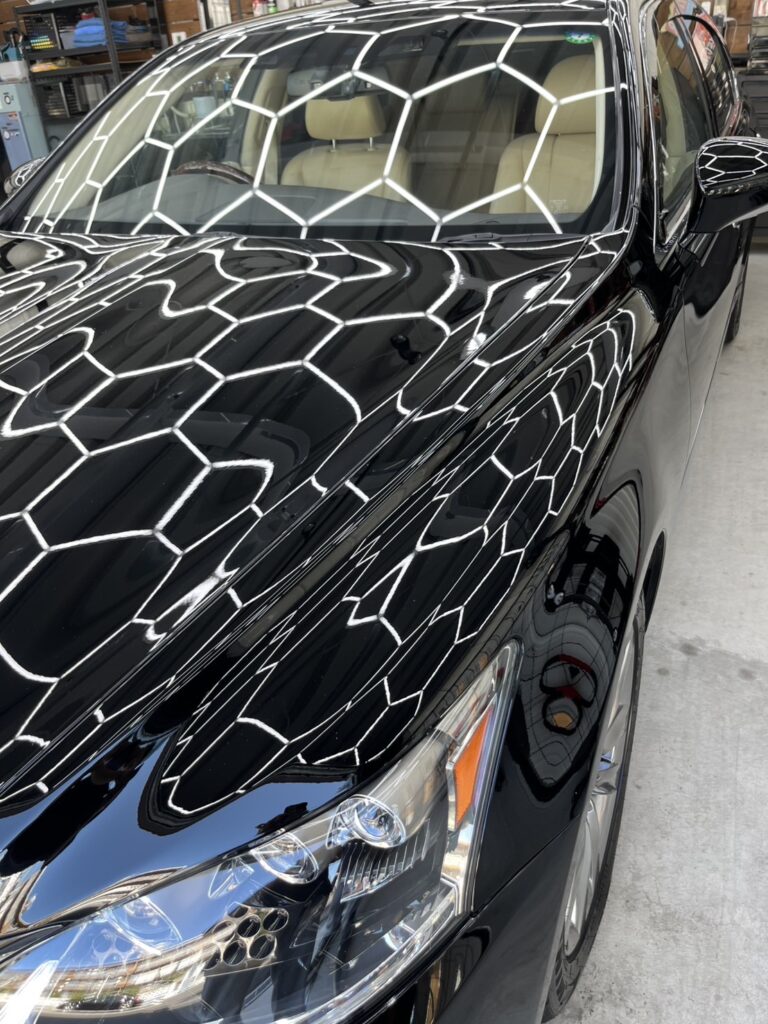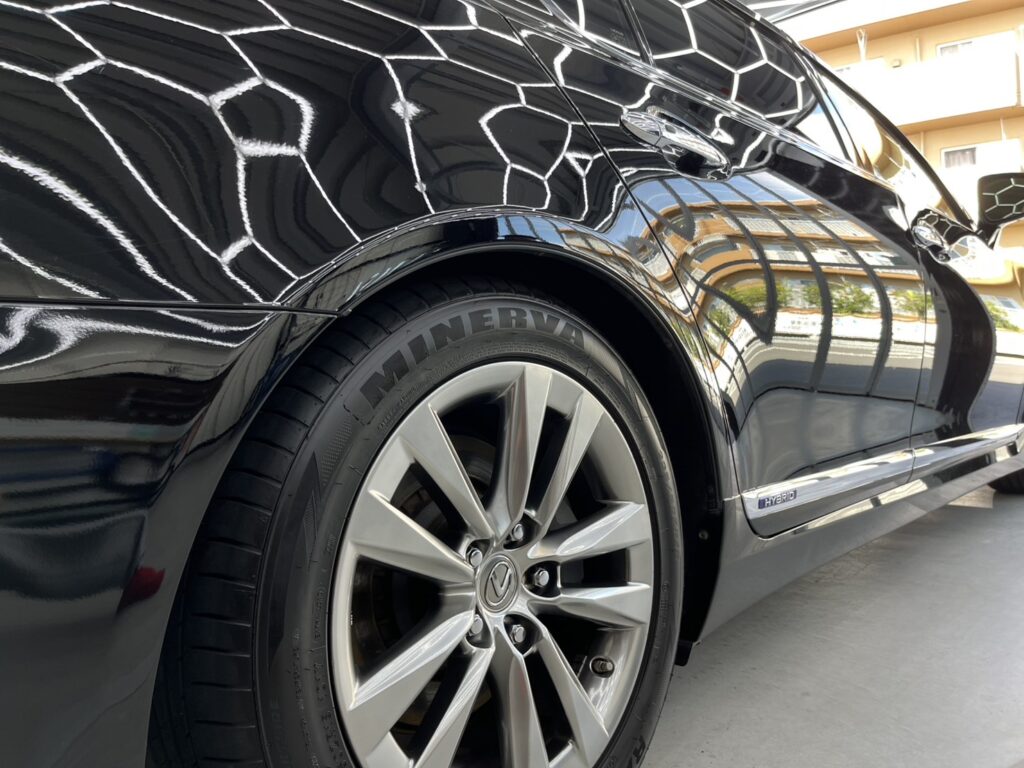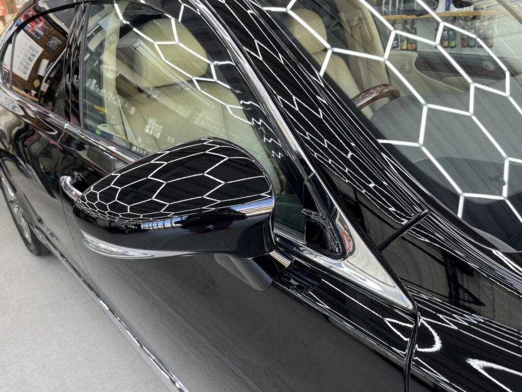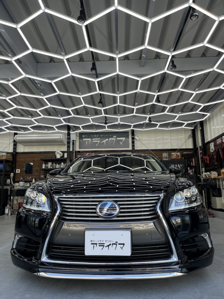 以前社用車で使われていた、レクサス600をご購入され、ボディ全面についた長年の洗車傷・水垢等を鏡面研磨にて磨き上げ、ナノメタルコーティングを施工させていただきました。