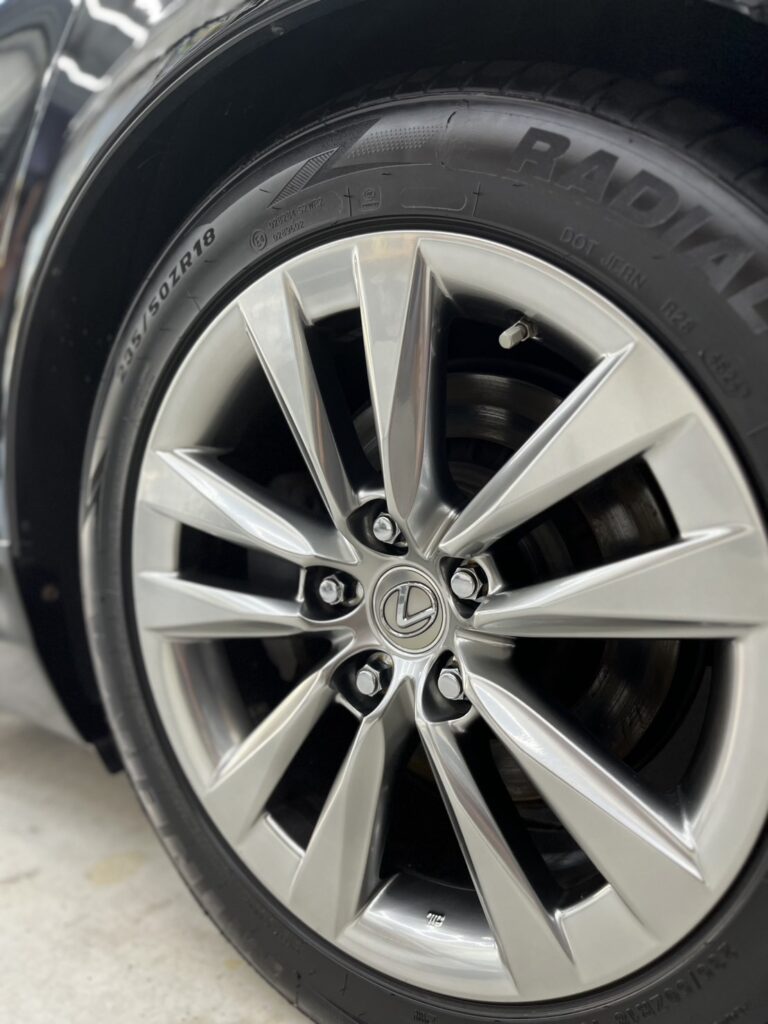 トヨタの202ブラックは、とてもデリケートな塗装で通常のブラックよりも一工程追加することとなります。メッキモール・ホイール・ガラス全面などもしっかりと汚れを除去後、コーティングを施工しました。